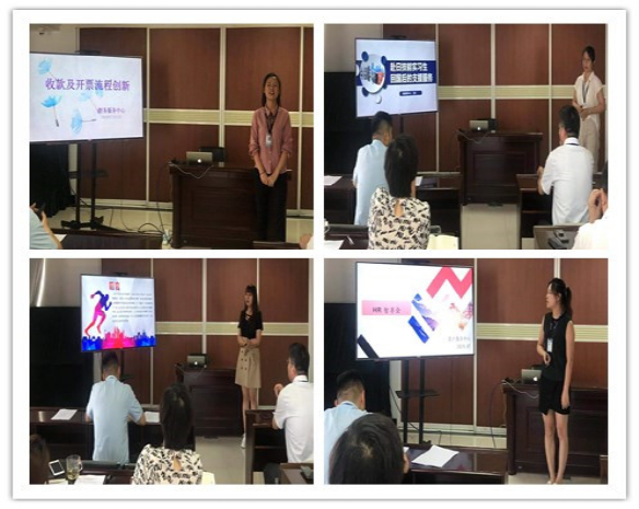 比賽分為團隊現場講解、展示、答辯三個環節,共有八個參賽作品,包括財務收款流程創新、赴日技能實習生歸國后支援服務、互聯網時代人力資源管理創新、HR 智享會、智愈(Soul-healer)、 “4+4”模式推進黨建工作、家庭日等。這些作品充分展現了青年員工對于新時代人力資源工作的新思路、新方法以及對行業新趨勢、新管理的思考和探索。公司領導班子及中層干部等組成10人評委組,對參賽作品進行評分。