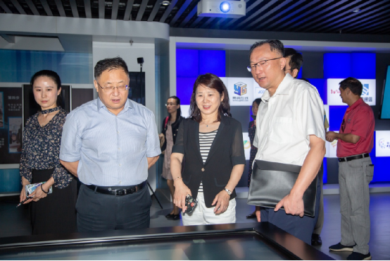 中智公司黨委書記、董事長卜玉龍、中智江蘇公司黨支部書記、總經理吳曉蘭在建鄴區區委組織部副部長郭震環陪同下參觀南京市建鄴區高新區(科技園)展廳